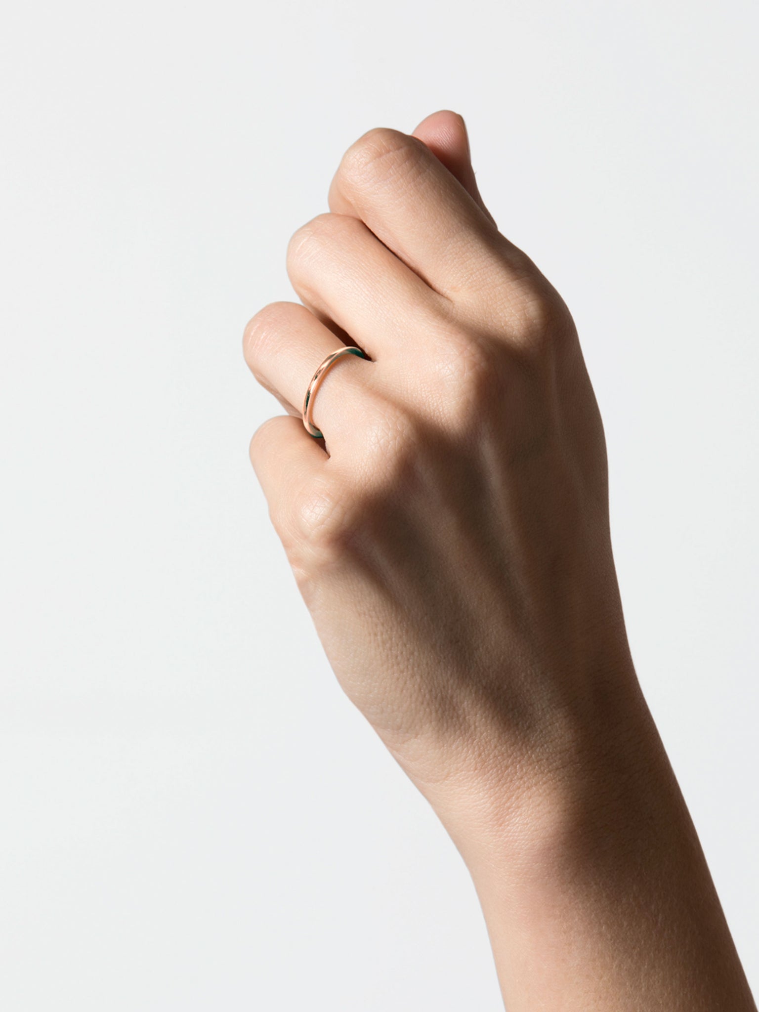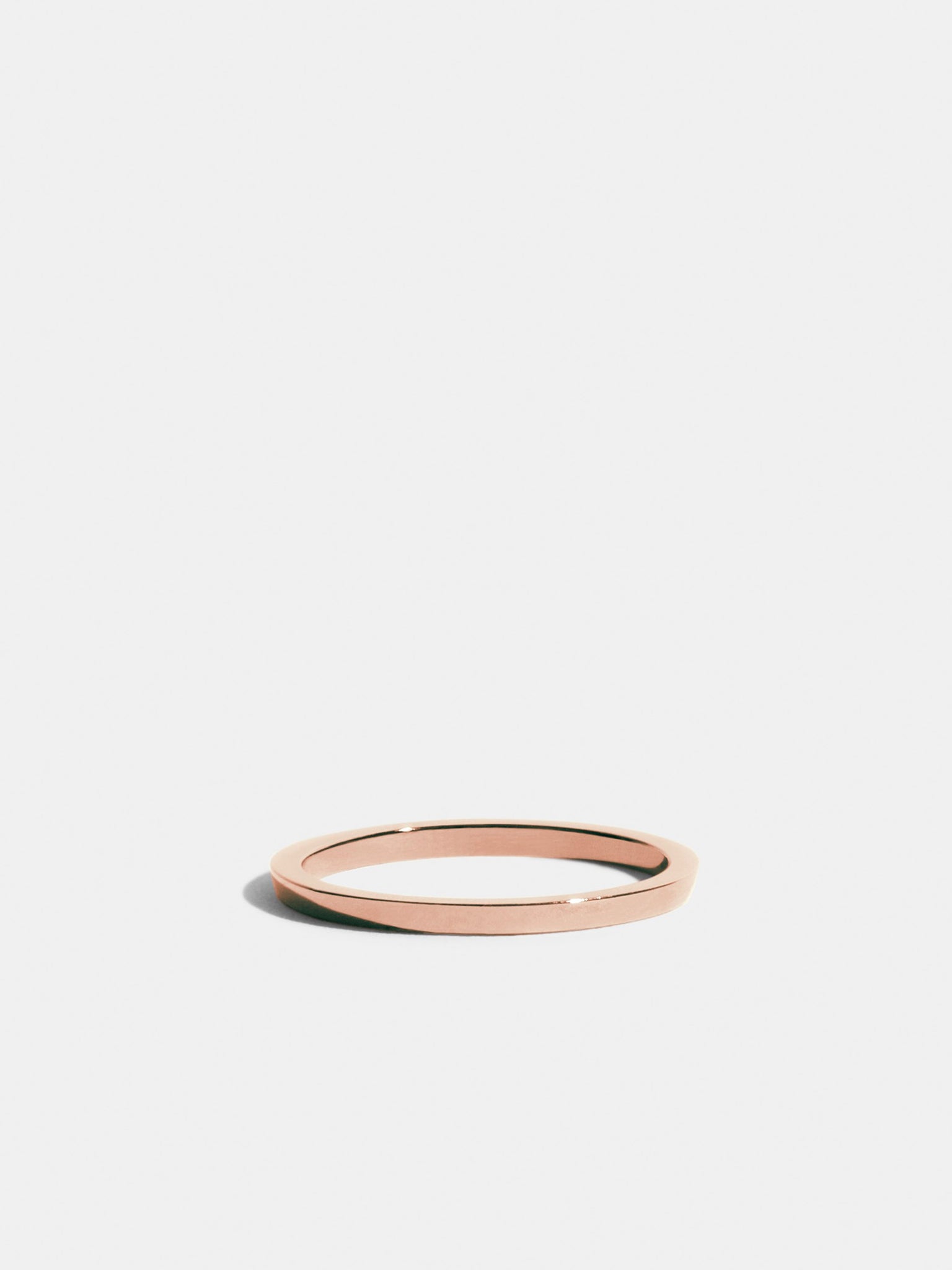 Bague Anagramme Ruban coupe Trapèze en Or rose 18 carats certifié Fairmined. Toutes les bagues de la collection Anagramme peuvent se porter seules, en accumulation avec d'autres anneaux Anagramme ou bien comme alliances. Archives JEM