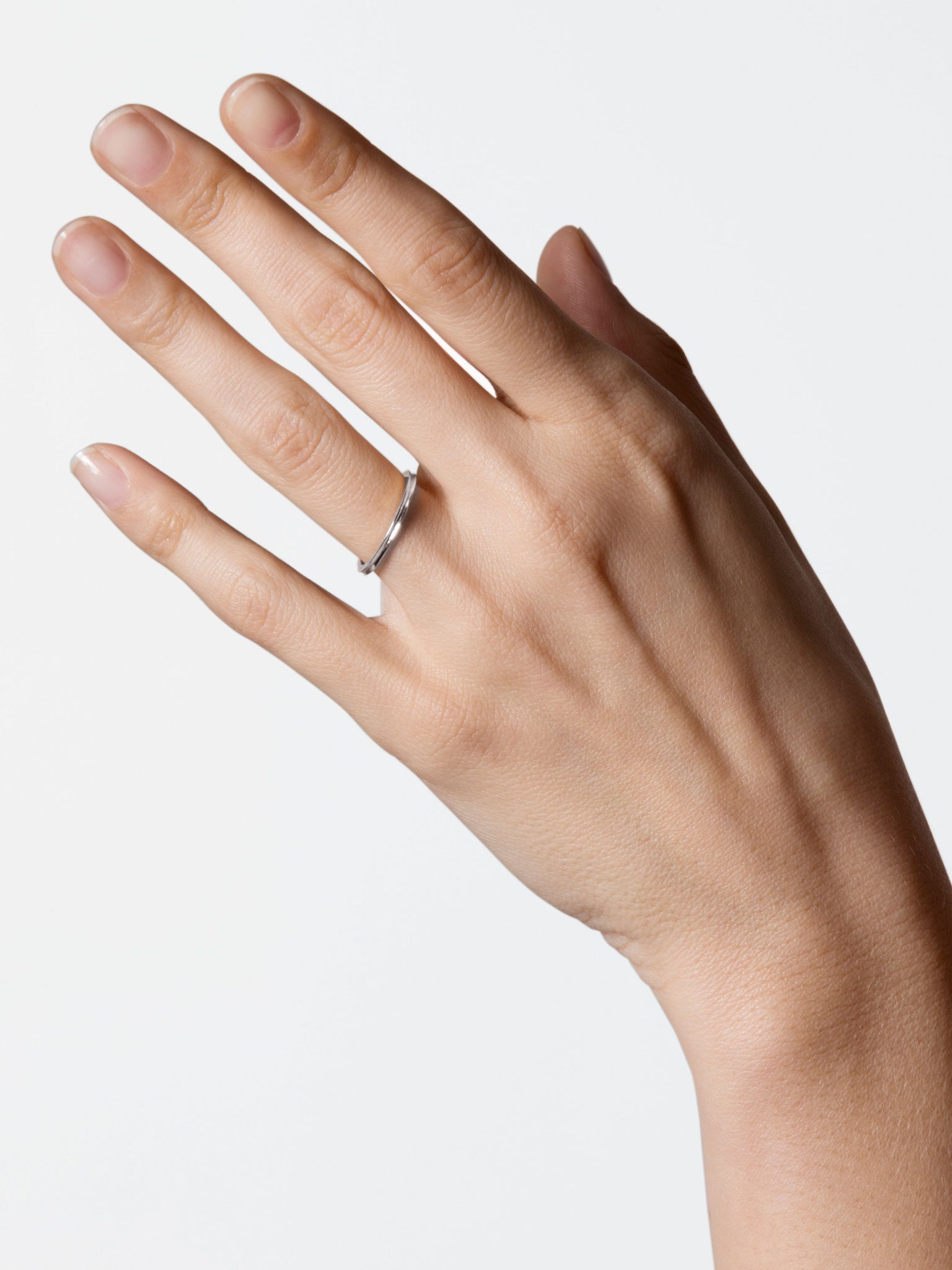 Bague Anagramme Ruban biseau intérieur en Or blanc 18 carats certifié Fairmined. Toutes les bagues de la collection Anagramme peuvent se porter seules, en accumulation avec d'autres anneaux Anagramme ou bien comme alliances.Archives JEM